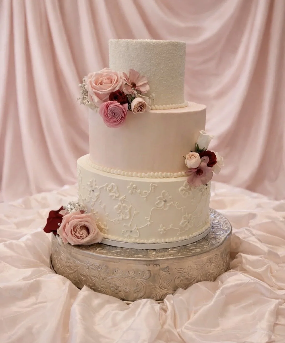 Your cake design draws inspiration from your wedding aesthetic, florals, textures, and overall atmosphere. Whether your vision leans toward timeless elegance, romantic florals, or modern simplicity, each cake is created to feel like a natural extension of the celebration. We collaborate with you, your planner, and your floral designer to ensure every detail feels beautifully cohesive.